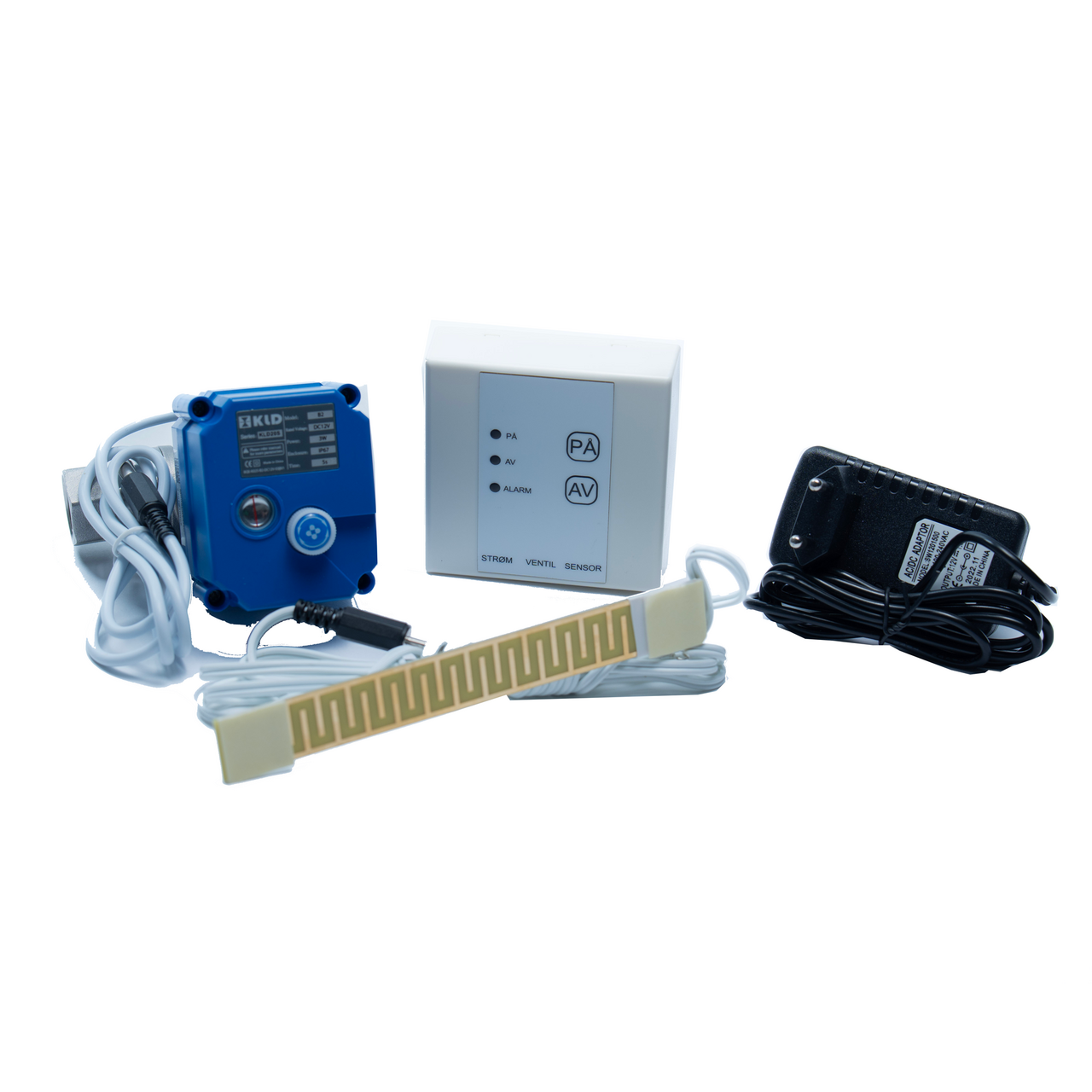 Rustfri kuleventil 1/2'' med sensorledning, strømadapter og sentral.