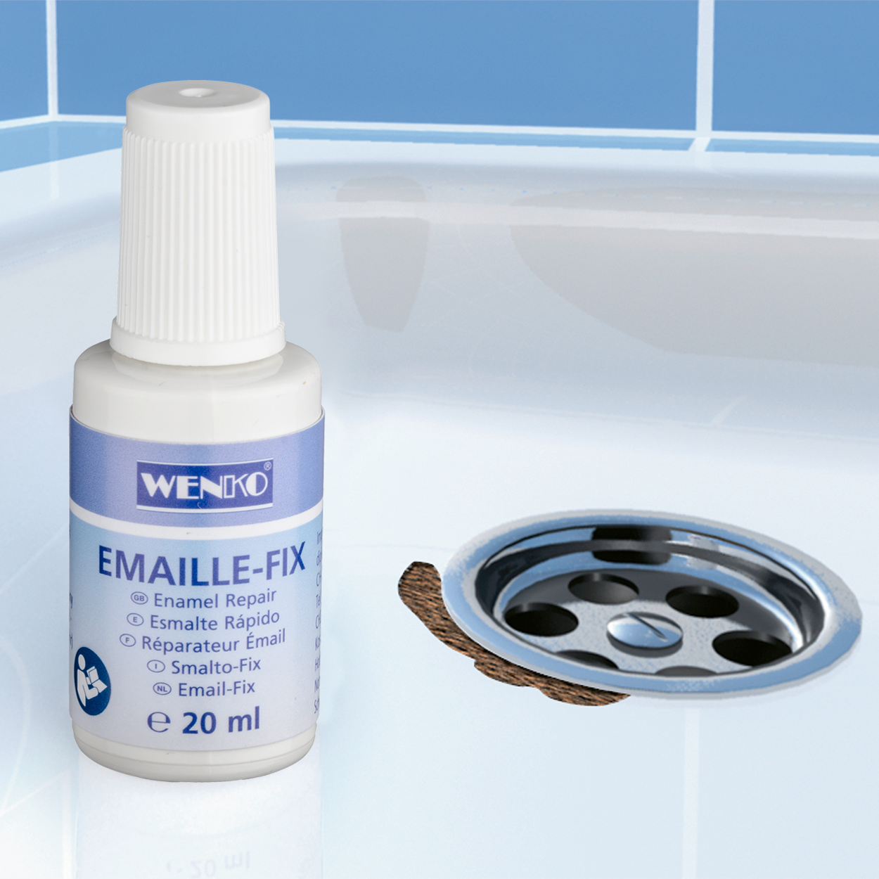 Denne hvite emaljelakken fra Wenko reparerer alle skader på emalje og lakk, på blant annet komfyr, servanter og badekar.