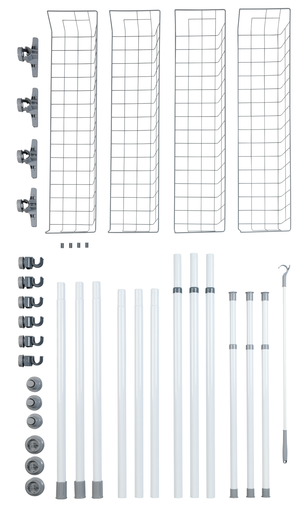 Individuelt justerbart garderobesystem. Særlig bra kvalitet. Justerbar i høyde og bredde. Tilpasning til forskjellige romslige arrangementer, kan også monteres i hjørner. Pulverlakerede metallskinner. Plastkomponenter av høy kvalitet ABS og PP