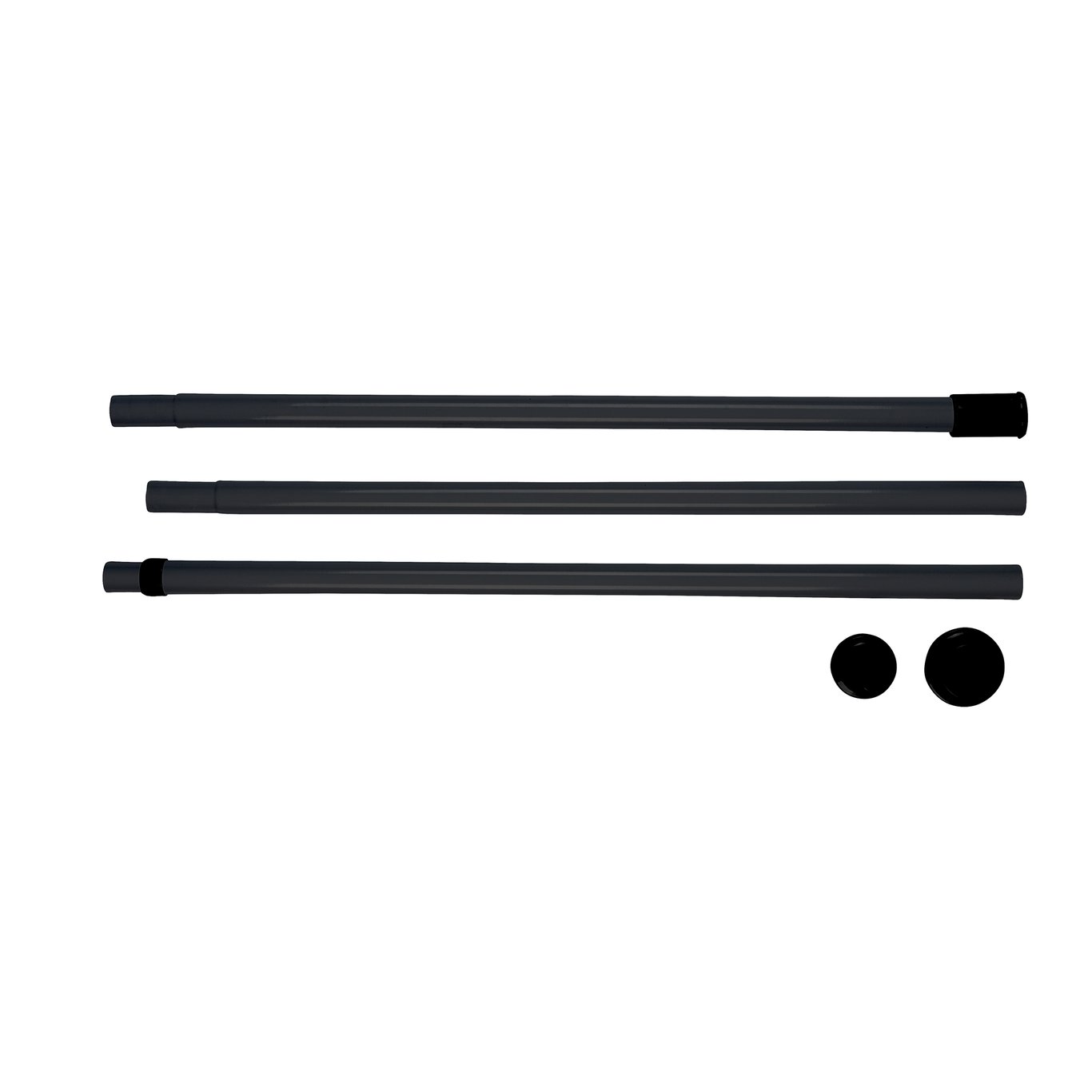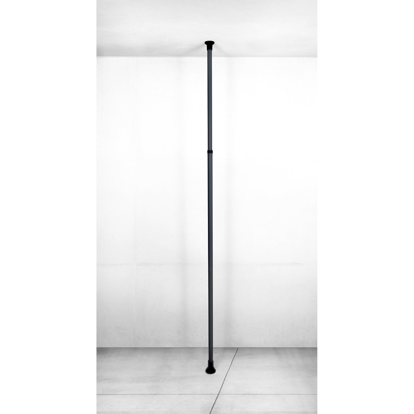 Den vertikale stangen er laget av solid, svart stål, og kan forlenges mellom 165 og 300 cm. Den festes uten å bore, ved å klemme den fast mellom tak og gulv. Stangen kommer med anti-skli plastføtter, for ekstra sikkerhet.