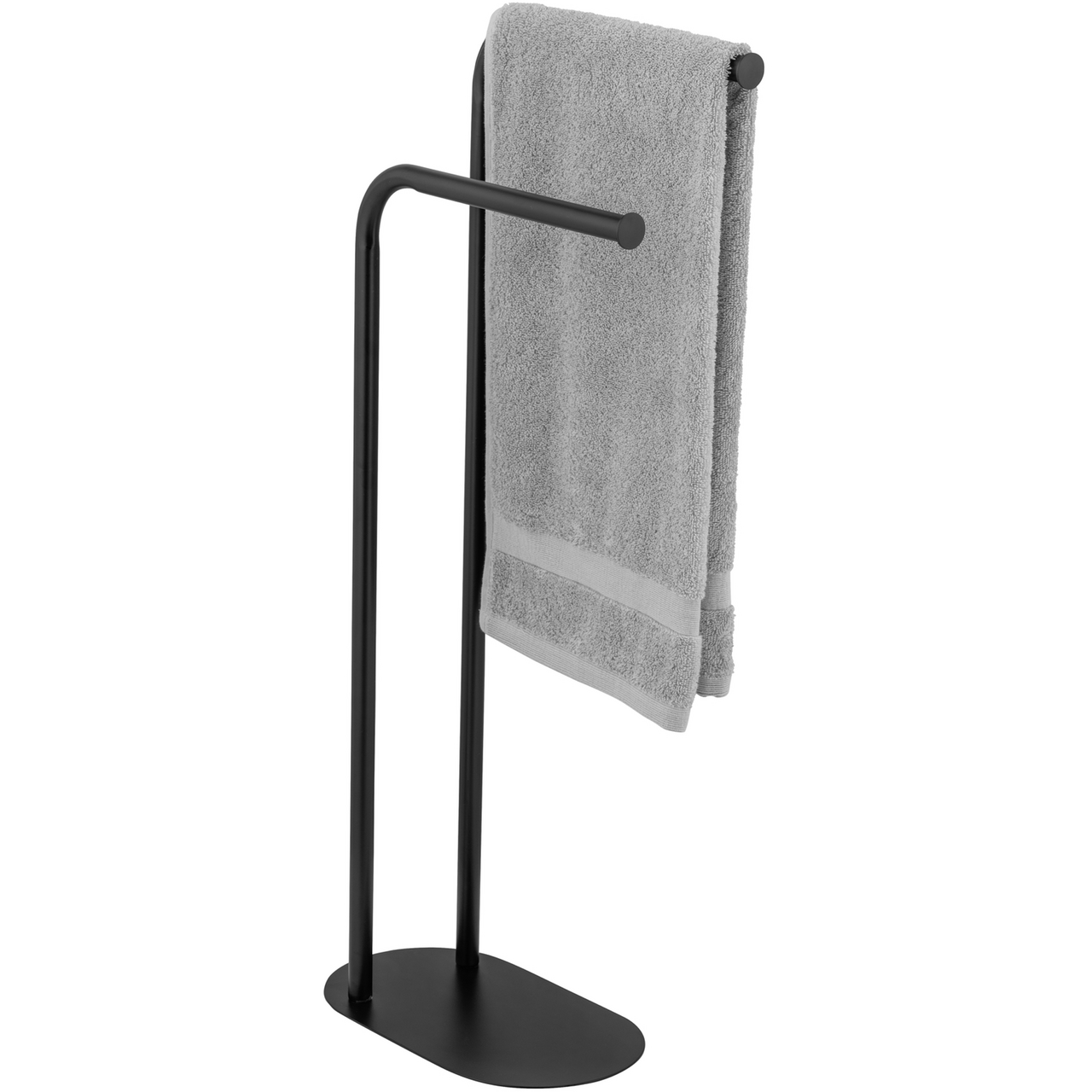 Denne håndkleholderen fra Wenko er frittstående og har to stenger i ulik høyde som gjør det enkelt å henge opp flere håndklær samtidig.