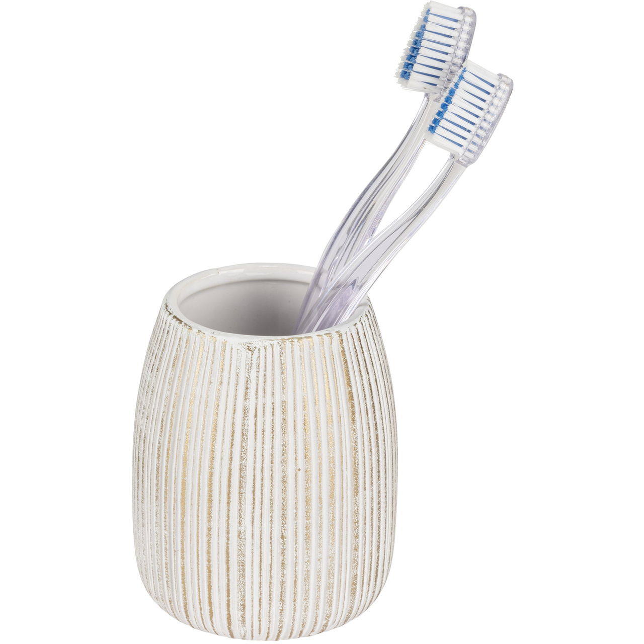 Dette tannglasset fra Wenko har en rillet struktur som bidrar til et elegant preg på badet.