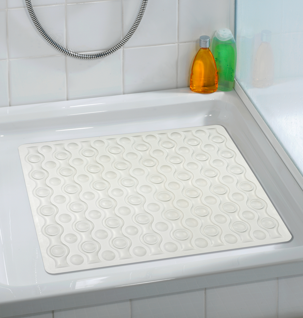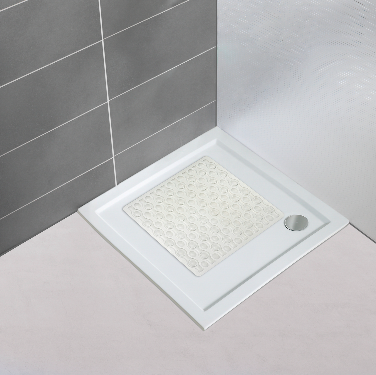 Badematte laget av miljøvennlig tung gummi. Dekorativ badematte med sugekopper på undersiden, glidende strukturert overflate for høyeste sikkerhetsnivå.