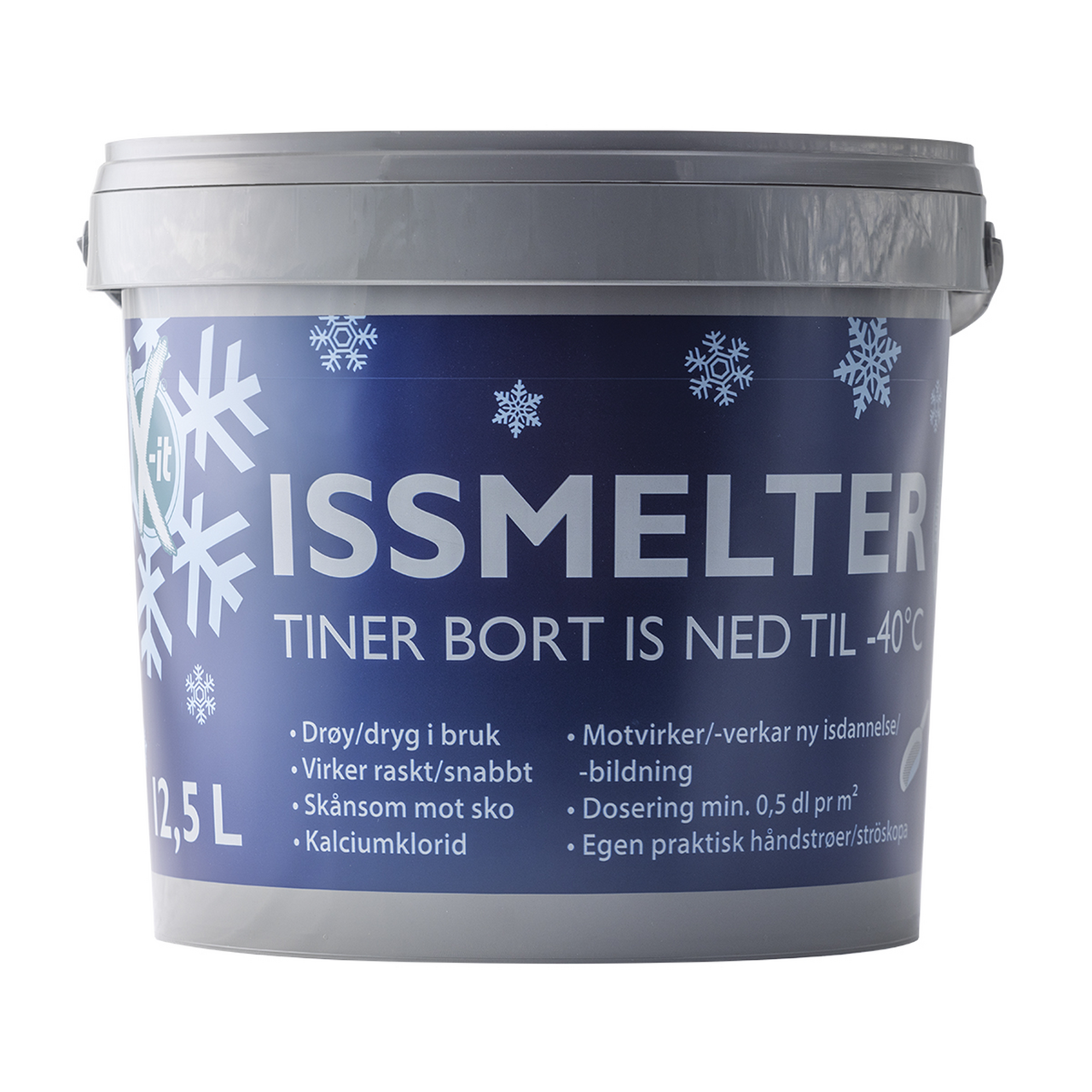 Issmelteren er enkel i bruk; fjern løssnø, strø ut min. 0,5 dl/m² før eller etter frost. La virke minst 30 min, skrap underlaget rent, ta bort smeltevannet. Gjenta behandlingen ved behov.